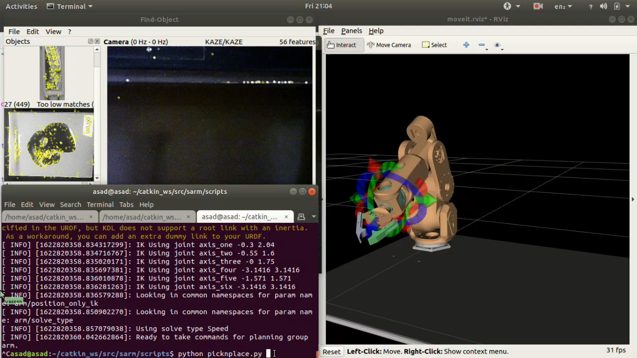 An Autonomous Robotic Arm that picks any object within the specific area of workspace.